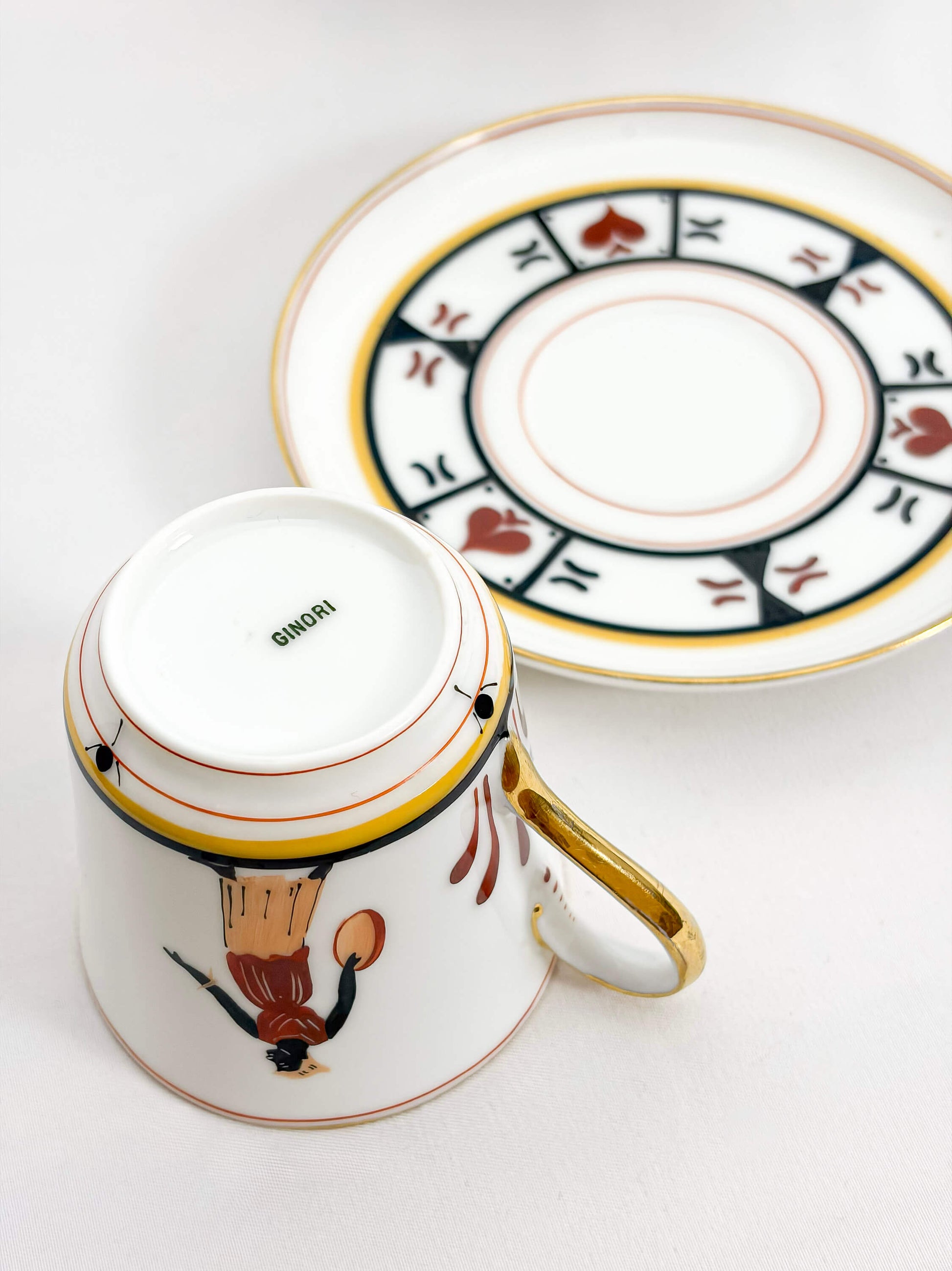 Porcelain tea service marked with the green “Ginori” factory mark.