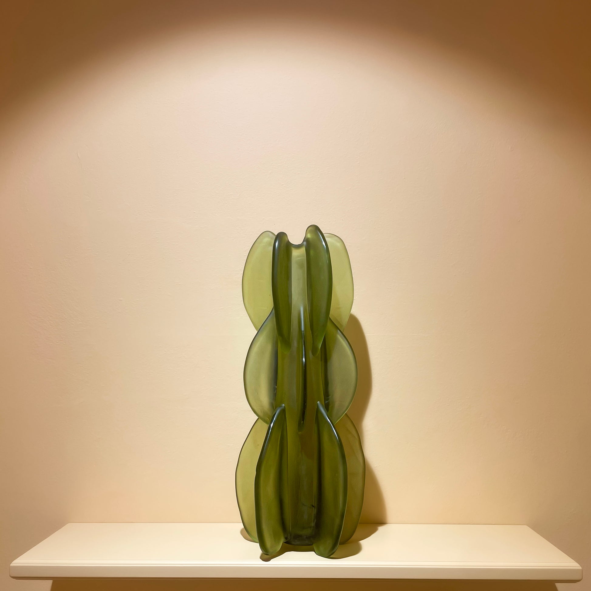 Hand-crafted glass sculpture made using traditional Venetian techniques. Shaped by artisanal processes, it features an irregular form with distinctive chromatic nuances. Finished with both satin and polished surfaces through careful grinding.